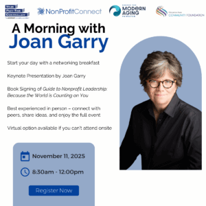 Designed for nonprofit staff and board members, this informative and inspiring session will remind you why you became a leader in the nonprofit sector while giving you a chance to laugh along the way. We will have a networking breakfast before the program. After the program, you will have the opportunity to purchase Joan’s latest book, “Guide to Nonprofit Leadership: Because the World is Counting On You”, and get your book signed by Joan. This program is in partnership with Center For Modern Aging-Princeton. We hope to see you there!