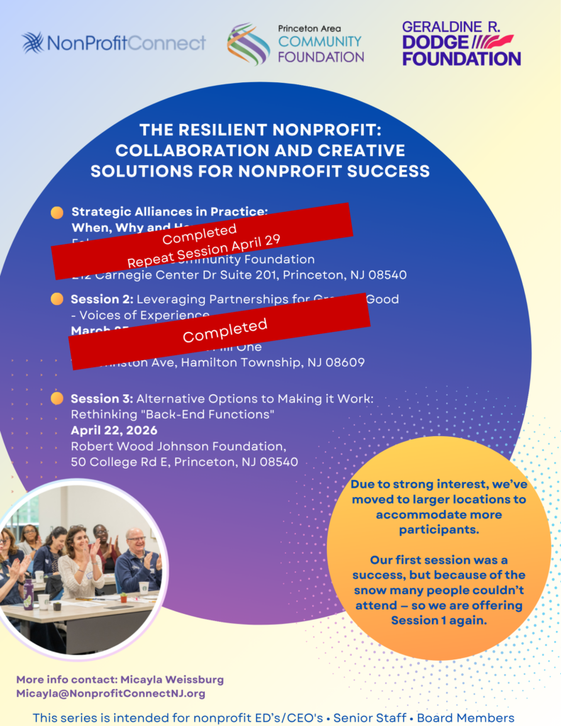 NonProfitConnect enhances the impact of greater Mercer County nonprofits by building an increasingly diverse, skilled, and engaged group of board and staff leaders. Through strengthening governance practices and leadership capacity, we help nonprofits maximize the impact of their programming for the communities they serve.