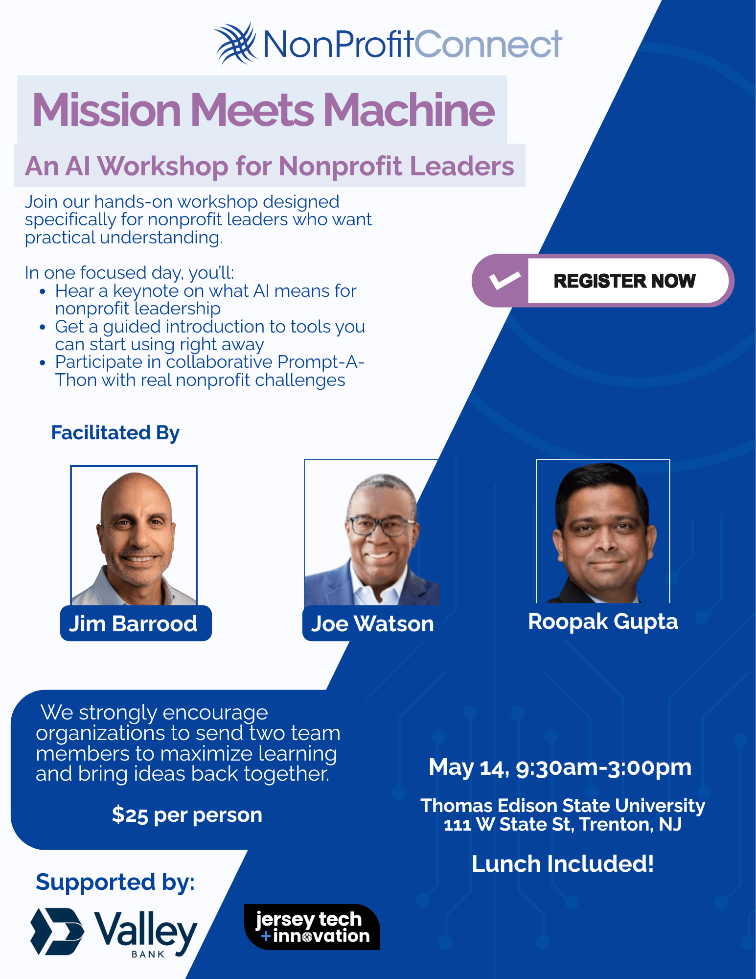 Teams will develop and share solutions and discuss what worked, what didn’t, and how to approach AI responsibly. You’ll walk away with practical ideas, useful prompts, and a clearer sense of how AI can support your mission, along with a community of leaders asking the same thoughtful questions.
